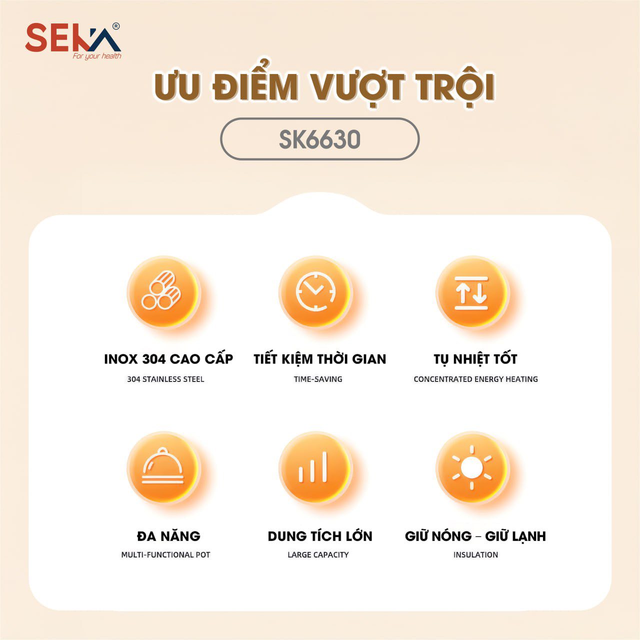 Đặc biệt, SEKA SK6630 với dung tích lớn, inox 304 cao cấp và khả năng giữ nhiệt lâu là lựa chọn phù hợp cho gia đình hiện đại.
